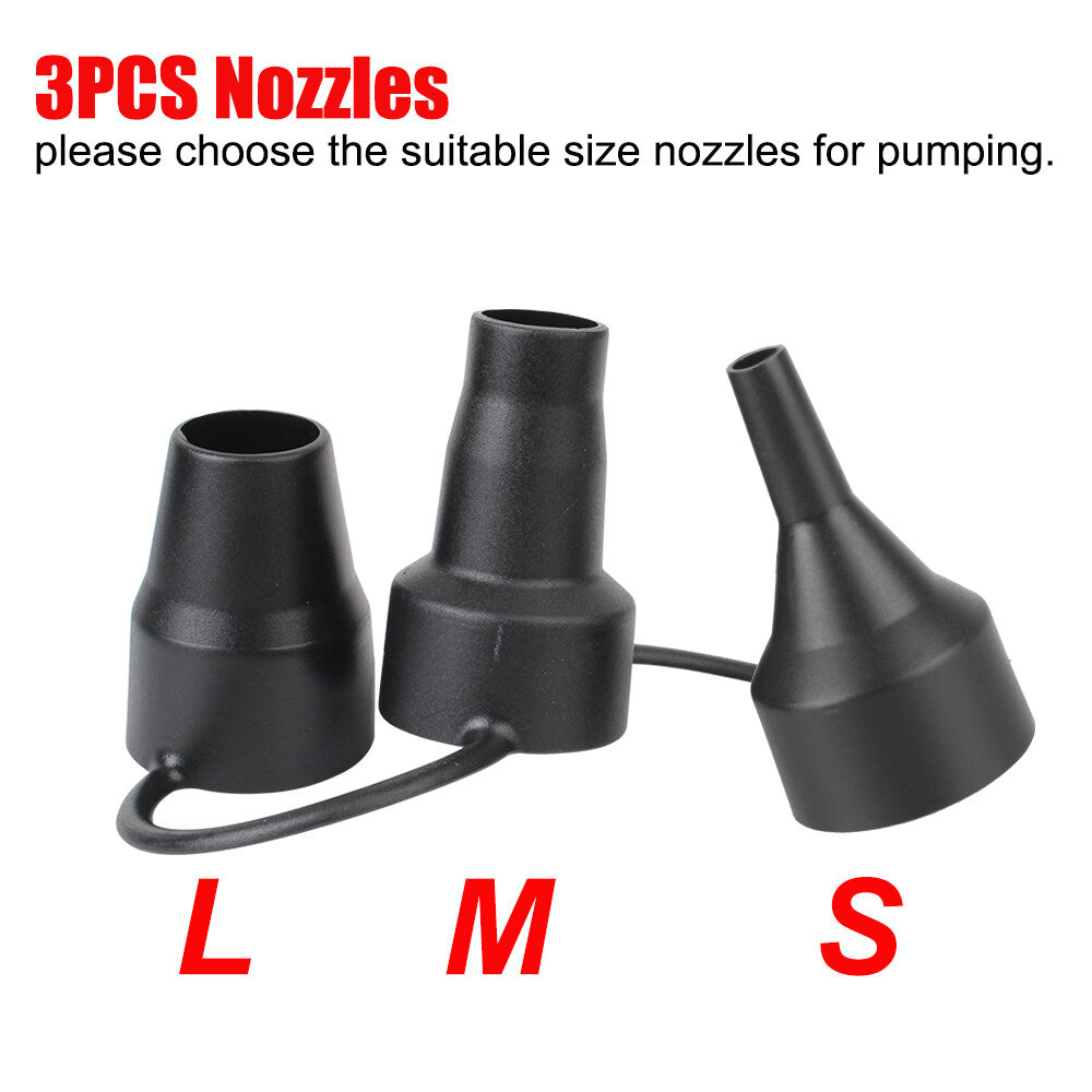 Multi-Nozzle Versatility: Comes with 3 universal nozzles to fit air beds, pillows, pool floats, car inflatables, and more.