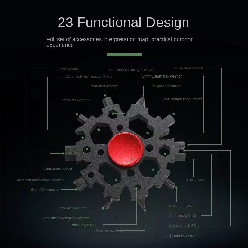 Absolutely! Here's a high-converting Shopify product title, sales copy, and description for your 23-in-1 Multi-Functional Snowflake Wrench Fidget Spinner—designed to appeal to outdoor enthusiasts, EDC lovers, and stress-relief seekers.